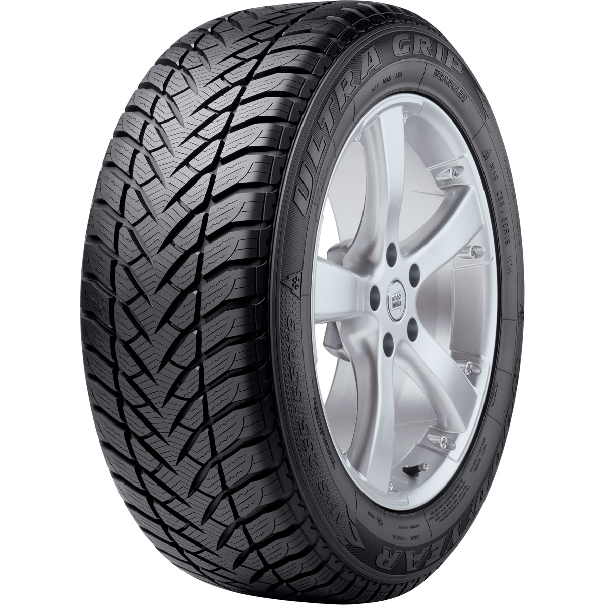 Шины GoodYear Ultra Grip+ SUV (255/55R18 109H RFT,XL).GoodYear Ultra Grip+ SUV описаниеЗимняя нешипованная шина Goodyear UltraGrip +SUV является одной из новейших разработок одного из мировых лидеров в производстве шин. Как следует из названия, данная модель предназначена, прежде всего, для легковых автомобилей повышенной проходимости, включая кроссоверы и пикапы. Широкий размерный ряд, включающий в себя около двух десятков наиболее популярных размеров, позволяет использовать эту шину на большинстве современных моделей легковых автомобилей, относящихся к внедорожникам. Как и полагается новинке, в этой шине североамериканский производитель применил все свои последние достижения. Одной из фирменных черт большинства легковых зимних шин является V-образный протектор с направленным симметричным рисунком. Данная модель не стала исключением. Ее протектор разработан в соответствии с одной из известнейших технологий компании, а именно V-Tred. Под этим термином скрывается направленный V-образный дизайн протектора. Данная схема расположения протекторных ребер и блоков более эффективно справляется с удалением из пятна контакта не только воды, но и снега и грязи, что обеспечивает более надежное сцепление, особенно на скользких поверхностях. При движении вода и снег вытесняется в продольные дренажные канавки, а затем направляется в поперечные каналы, через которые выводятся наружу. При этом поперечные каналы направлены назад относительно направления движения, что существенно повышает эффективность работы дренажной системы. Отличные показатели тяги и сцепления на скользких поверхностях обеспечиваются множеством протекторных блоков, вокруг которых проходят дренажные канавки и каналы. Еще одним существенным преимуществом V-образного дизайна протектора является прекрасная курсовая устойчивость, которая обеспечивается широким и жестким центральным ребром, сформированным стреловидными блоками. Также нельзя не отметить и еще одно достоинство такого протектора – стабильные размеры площади пятна контакта вне зависимости от типа покрытия и дорожных условий. Это позволяет более уверенно передвигаться по любым дорогам. Еще одним нововведением шины Goodyear UltraGrip +SUV стала технология 3D-BIS, которая, по мнению производителя, является на сегодняшний день революционной. Технология трехмерной системы взаимной блокировки блоков протектора направлена создание множества дополнительных кромок зацепления при одновременном сохранении жесткости каждого отдельного блока при помощи особых ламелей, расположенных на поверхности каждого из блоков. В момент соприкосновения с дорожным полотном ламели соприкасаясь с друг другом выпуклыми пузырьками прочно фиксируются в выемках на противоположенной стороне. В результате разделенные ламелями на отдельные секции блоки становятся более жесткими. В результате удалось существенно улучшить сцепление с обледенелой поверхностью, сохранив другие эксплуатационные характеристики на высоком уровне. Состав резиновой смеси был подобран, исходя из условий зимней эксплуатации шины. Основные изменения связаны с увеличением содержания в составе резиновой смеси кремнийсодержащих компонентов – силики. Оксид кремния позволил значительно улучшить сцепление со скользким покрытием за счет повышения эластичности. При этом шина остается достат