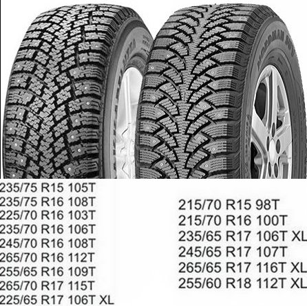 Nokian Nordman SUV описаниеШины Nokian Nordman SUV в типоразмерах 225/65 R17 106 T XL, 235/75 R15 105T, 235/75 R16 108T, 225/70 R16 103T, 235/70 R16 106T, 245/70 R16 108T, 265/70 R16 112T, 255/65 R16 109T, 265/70 R17 115T имеют рисунок протектора шин как у шин Nokian Hakkapeliitta 1. Шины Nordman SUV в типоразмерах 215/70 R 15 98 T, 215/70 R 16 100 T, 265/65 R 17 116 T XL, 245/65 R 17 107 T, 235/65 R 17 108 T XL выпускаются с рисунком протектора шин Nokian Hakkapeliitta 4.Аналогичные размеры |